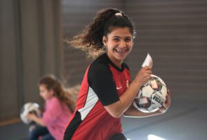 Kinder und Jugendliche mit Fluchtgeschichte an Gemeinschaftsunterkünften können niedrigschwellig Sport und Bewegung erfahren. In regelmäßigen Abständen direkt vor Ort. Denn Sport verbindet. Nicht nur sozial, sondern auch in andere Angebotsstrukturen. So sorgt kick connect für Teilhabe und Integration in gesellschaftliche (Sport-)Strukturen.